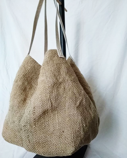 Raw juta maxi cabas with Paradisolab handprinted linen - inside pocket, press stud closure